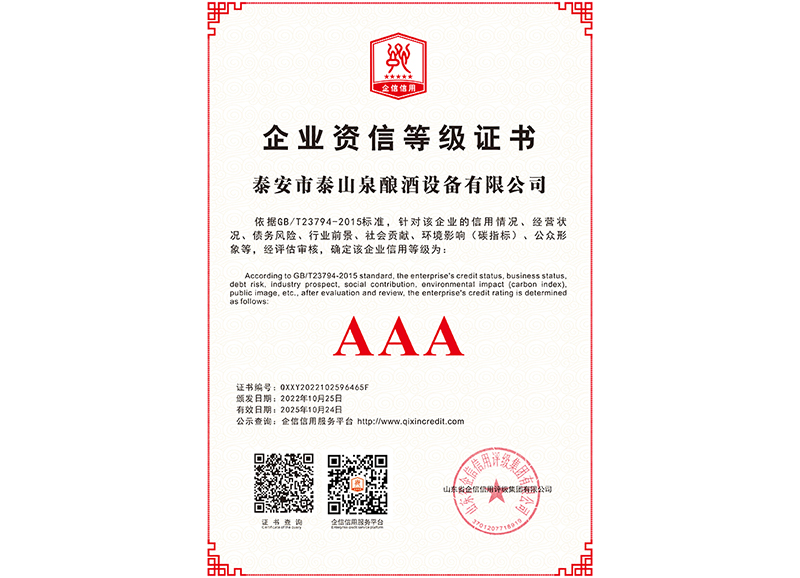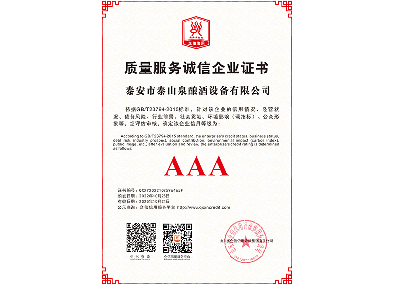 泰安市泰山泉釀酒設(shè)備有限公司,是一家專業(yè)從事釀酒設(shè)備機械化研發(fā)并集技術(shù)咨詢,工程設(shè)計,制造安裝,人員培訓(xùn)及售后服務(wù)為一體的綜合性企業(yè),本公司主要產(chǎn)品為:大曲清香、小曲清香、大曲醬香、大曲濃香等香型白酒機械化設(shè)備?! ”竟九c中國科學(xué)院自動化研究所簽訂技術(shù)服務(wù)合同,引進(jìn)先進(jìn)技術(shù),研究生產(chǎn)全自動化機械釀酒設(shè)備,由中國科學(xué)自動化研究所的技術(shù)支持,打造最先進(jìn)的生產(chǎn)釀酒設(shè)備,公司有信心打造全國最先進(jìn)白酒...